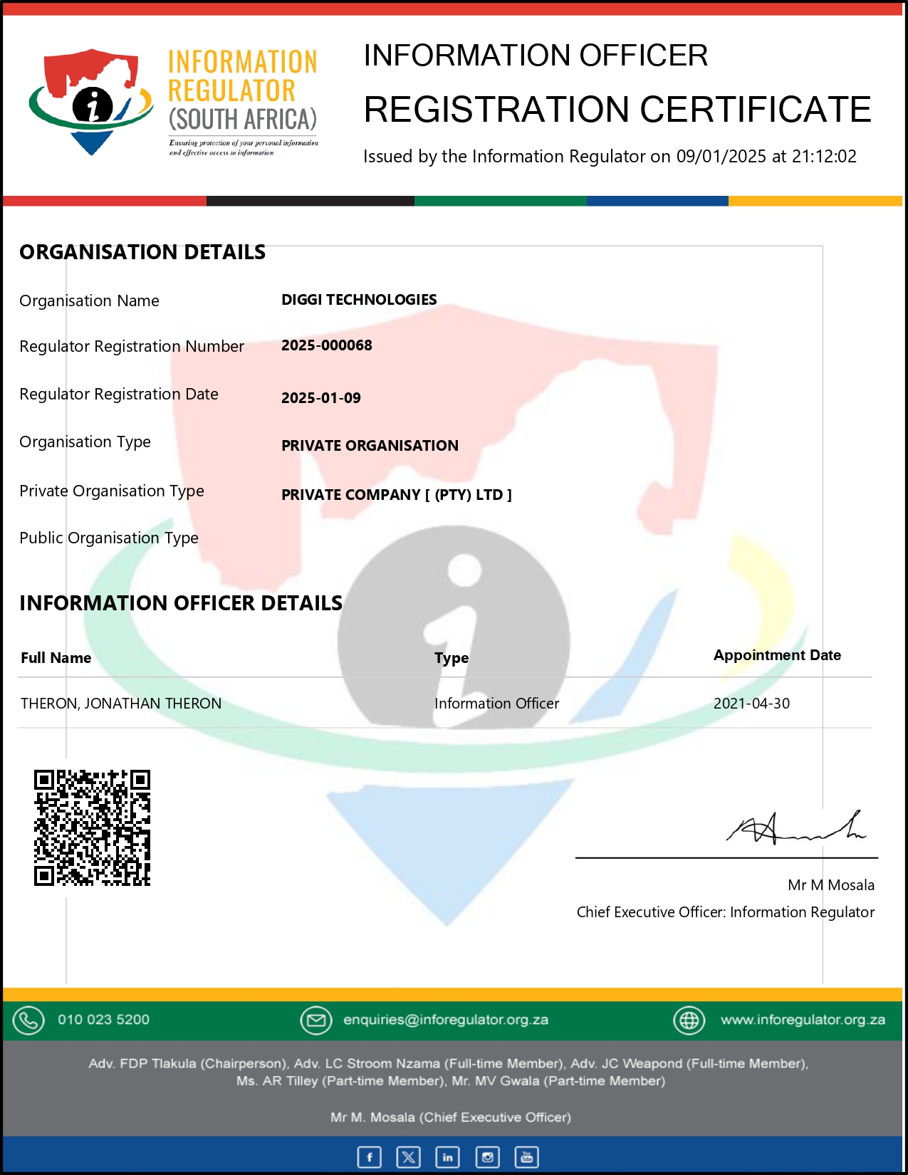 We are compliant with the Protection Of Personal Information Act.